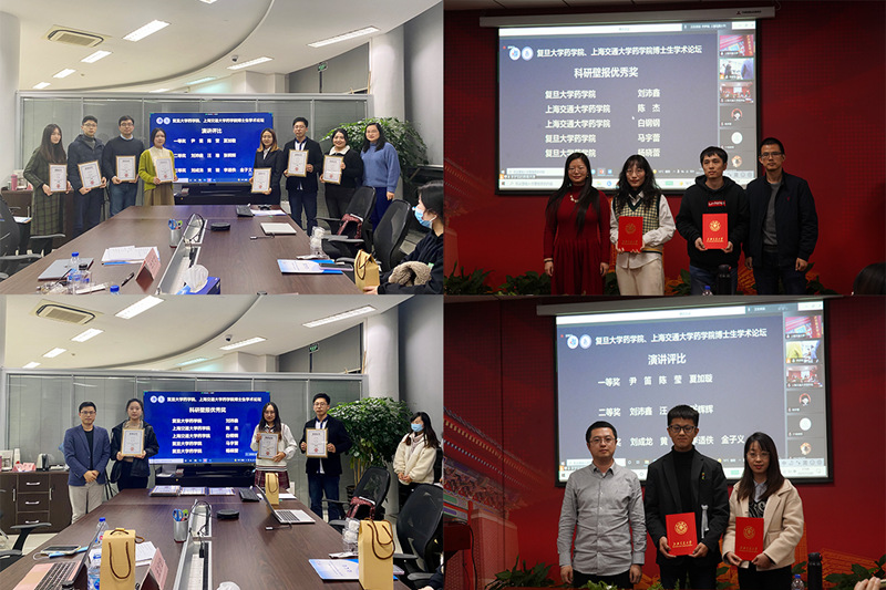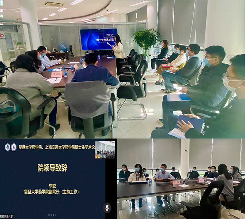 为营造学术氛围、激发创新热情、推动学科探究、促进学术交流,鼓励各专业研究生相互学习、博采众长、拓宽思路,并更好地实现与友校的学术沟通和人文交流,h漫 与上海交通大学h漫 于2021年11月26日下午线上线下同步开展“聚焦新靶标、新技术、新分子,推动药物创新和转化”两校博士生学术论坛。h漫 副院长(主持工作)李聪、常务副院长潘俊、党委副书记王宁宁,上海交通大学h漫 团委书记高杏等出席论坛。参与评审的h漫 教师黄容琴、茅以诚、曾贤于主会场出席论坛,上海交通大学h漫 教师薛向东、李林、王欣于上海交通大学分会场出席论坛。此外,h漫 教师李嫣、孙域,上海交通大学h漫 教师经莉莉、孙磊、王寅老师参与了本次论坛的第一轮通讯评审工作。h漫 2021级直博生包彦宁主持,两校近百名硕博研究生于线上线下参加了论坛。