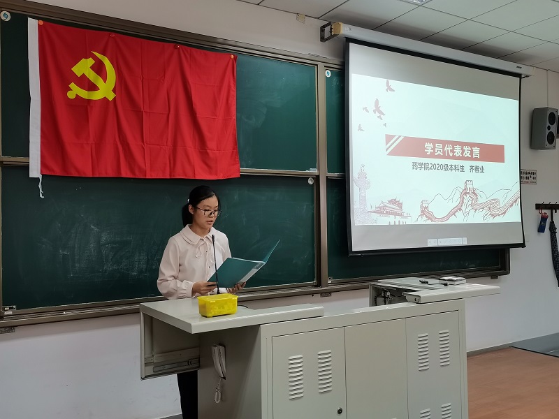 之后,2020级本科生齐春业同学作为学员代表发言。她总结了自己在党校中的学习成果,并结合自身入党动机,向大家表达了成为一名先进党员的热切渴望,表示自己将和其他学员一起不忘初心,砥砺前行,为共产主义事业奋斗终身。