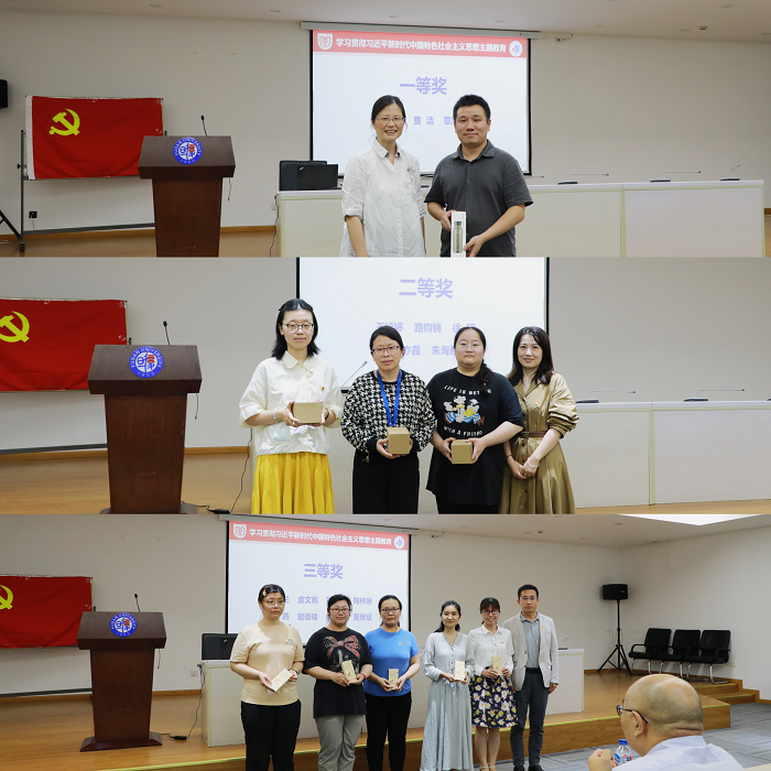 接下来,史雪茹副书记从理论学习、调研情况、推动发展等几方面向参会老师汇报了学院开展学习贯彻习近平新时代中国特色社会主义思想主题教育的总体情况。为达到以赛促学、以学促思、以思促行的良好效果,学院举行了“新时代 新思想 新理念 新征程”学习贯彻习近平新时代中国特色社会主义思想主题教育线上知识竞赛。会上,副院长潘俊、戚建平,党委副书记王宁宁分别为一二三等奖获得者颁发奖品以示鼓励。