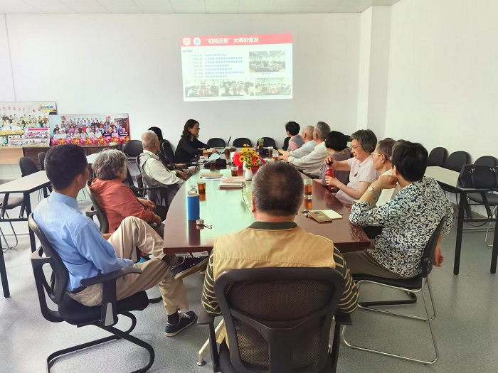 史雪茹副书记代表学院关切询问了退休教师们的身体和生活状况,表达了学院对他们的关心和牵挂。接着,在讲解了习近平新时代中国特色社会主义思想的科学体系和核心要义以后,根据其实践要求,从学院的教学科研管理、人才引进、重点任务等方面介绍了学院发展情况,并着重介绍近期主题教育以及“切问近思”大调研的开展情况,希望老同志们发挥经验优势、威望优势,集思广益,为学院高质量发展贡献智慧与力量。