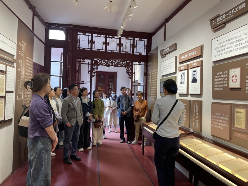 党员同志们开启红色景点“City Walk”,走进了《新青年》编辑部旧址。踏入这座承载着厚重历史记忆的石库门建筑,仿佛时光倒流,泛黄的创刊号、珍贵的手稿、高度还原的编辑场景,无声地诉说着百年前革命先驱们以笔为刃、传播新思想的峥嵘岁月。在讲解员的引导下,大家深刻感受到《新青年》作为新文化运动的主阵地、马克思主义传播的重要平台所具有的深远历史意义,领悟到早期知识分子为民族觉醒不懈奋斗的坚定信念。