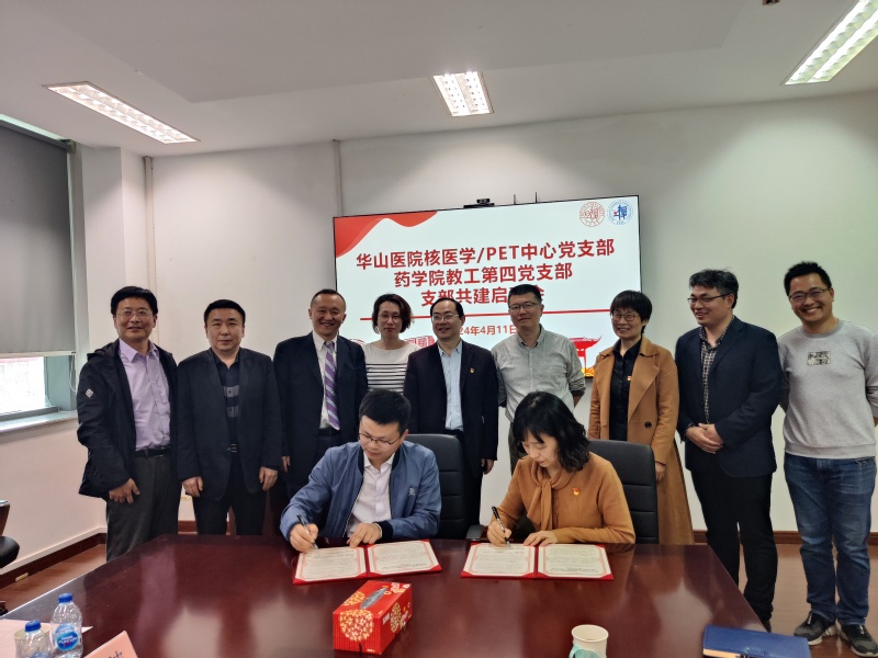 教工四支部和附属华山医院核医学/PET中心党支部在张江校区科研楼晶晖厅举行了支部共建启动会。华山医院党委副书记、纪委书记高继明,党委办公室主任李妍斐,核医学/PET中心科室主任管一晖、副主任左传涛、副主任朱汇庆,h漫