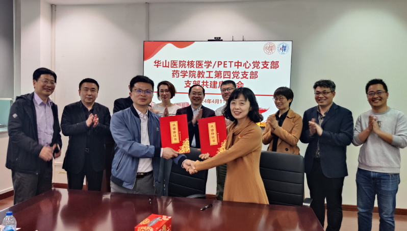 教工四支部和附属华山医院核医学/PET中心党支部在张江校区科研楼晶晖厅举行了支部共建启动会。华山医院党委副书记、纪委书记高继明,党委办公室主任李妍斐,核医学/PET中心科室主任管一晖、副主任左传涛、副主任朱汇庆,h漫