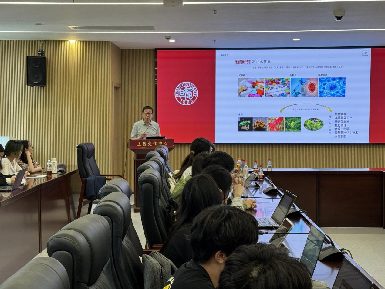蒋院士的学术生涯丰富多彩,他曾在南京、北京、上海等地学习,后赴美国深造,回国后一直致力于药物研究工作。“创新药物研究没有几个国家能做”,蒋院士在讲座开篇指出,新药研究是多学科荟萃的高技术领域,融合了化学、物理、生物等学科知识,具有“高投入、高技术、高风险”的特点,但成功后的回报也是巨大的。药物研究主要涵盖化学药、生物药、细胞治疗等板块,而中药作为中国独有的特色,也在现代科学技术的推动下实现了百年跨越,青蒿素的发现更是荣获了诺贝尔医学生理学奖。国人的平均寿命从35岁延长至78岁,抗生素和疫苗的技术突破功不可没。