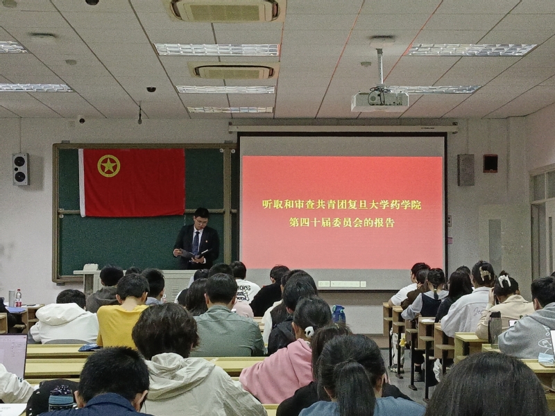 王翰麒代表共青团h漫 第四十届委员会向大会作题为《紧跟党走,牢记嘱托,团结带领药学青年人在新时代书写实干篇章》的工作报告。报告从团学团建、校园文化、学术科研、志愿服务等角度向全体与会代表介绍上一届团委工作情况,同时剖析了不足,最后他勉励广大团员青年以专业所长回应国家需求和社会需求,努力成长为堪当民族复兴重任的时代新人。