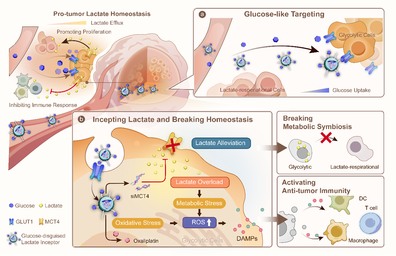 相关成果以Disrupting Tumor Lactate Homeostasis to Sensitize Chemo-Immunotherapy Using a Glucose-Disguised Lactate Interceptor为题,在线发表于国际知名期刊 ACS Nano。