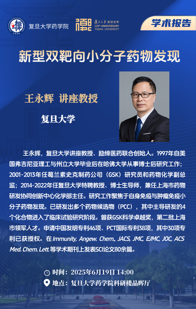 6月19日学术报告 - 新型双靶向小分子药物发现