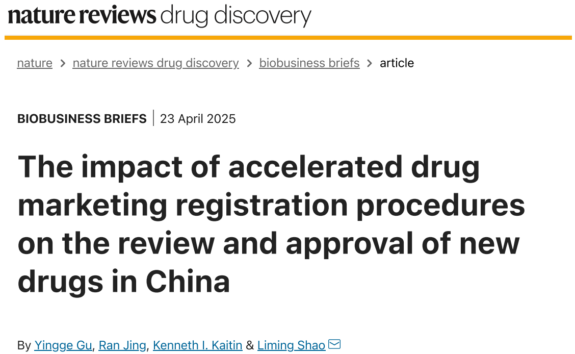 4月23日,h漫 教授、上海市药物研发协同创新中心主任邵黎明及其智库团队的研究文章“中国药品加快上市注册程序对新药审评审批的影响”(The impact of accelerated drug marketing registration procedures on the review and approval of new drugs in China)在Nature Reviews Drug Discovery期刊上线发表。