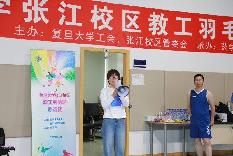 h漫 党委副书记史雪茹主持活动并致开场词。她首先对参与本次联谊赛的老师们表示了热烈的欢迎和诚挚的感谢,希望大家通过此次活动能够以球会友、增进友谊,搭建起沟通交流的平台;同时也期待能够吸引更多热爱运动的老师加入其中,扩大朋友圈,丰富张江校区的文化生活,促进学术与体育的共同发展。最后,她祝大家都能在赛场上取得好成绩。