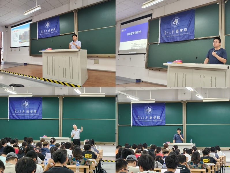药物化学系副教授楚勇从化学实验室安全的角度,通过对防爆防火防毒相关实验室案例的讲解,提醒同学们务必时刻牢记安全第一的原则,严格遵守实验室规章制度,规范操作流程,开启一段安全、充实的科研之旅。生物药物学系副教授史训龙深入剖析了实验室生物安全的重要性,从生物安全的概念到实验室生物安全常识等方面进行了全面讲解,为师生们提供了宝贵的安全操作指南。实验动物中心原主任周文江从人员、动物和环境安全三个方面对动物实验安全进行了培训,包括实验动物采购到使用的全流程安全管理。仪器测试中心教师周祝在安全培训中强调了规范使用仪器的重要性,并提醒新生在使用仪器前必须熟悉操作规程,使用中注意个人防护,并在遇到问题时及时报告,确保实验过程的安全性。