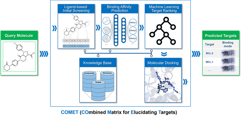 近年来,h漫 王任小团队开发了一种名为COMET(Combined Matrix for Elucidating Targets)的反向钓靶预测算法。该研究构建了一个包含配体相似性评分、基于结构的结合亲和力预测以及分子对接的组合式框架,并通过机器学习算法实现了靶标的高精度排序。日前,该项工作以“COMET: A Machine-Learning Framework Integrating Ligand-Based and Target-Based Algorithms for Elucidating Drug Targets”为论文标题,在线发表在药物化学领域权威期刊Journal of Medicinal Chemistry上。