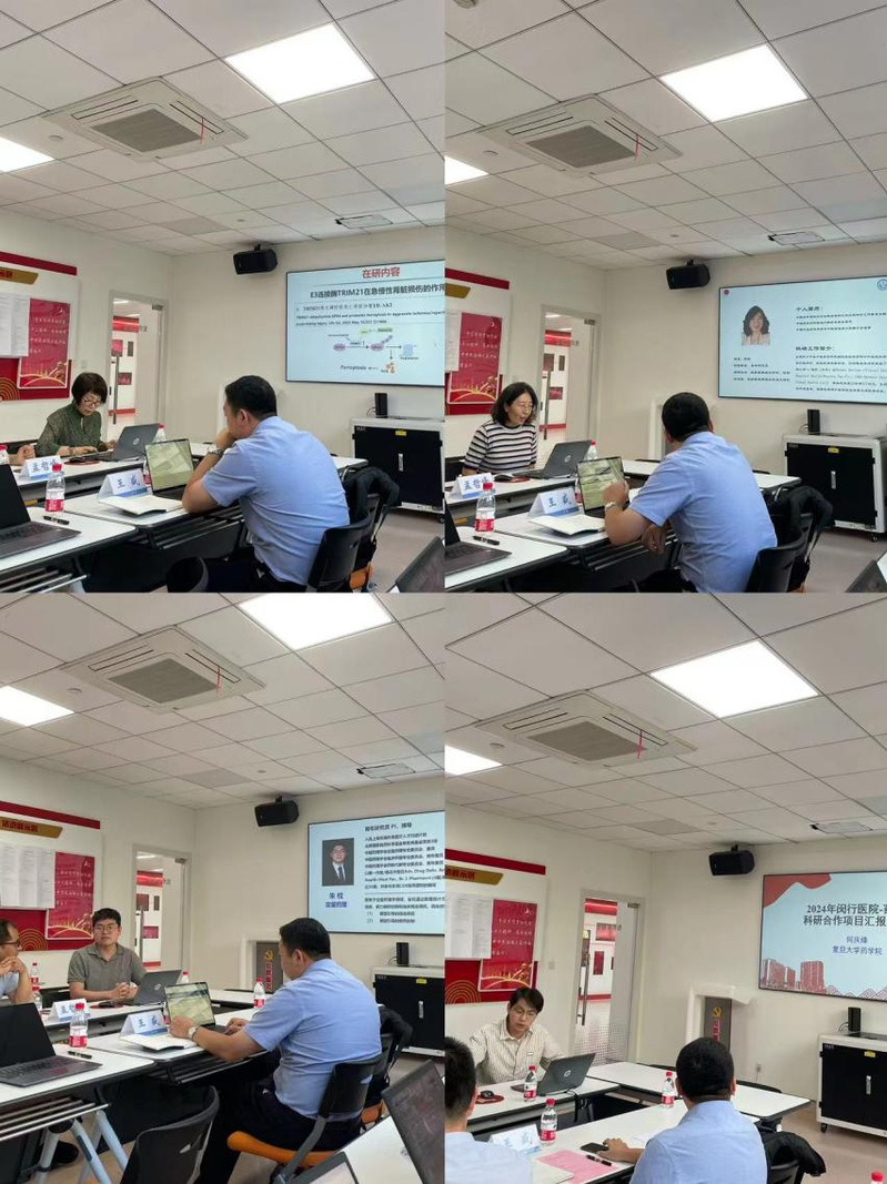 紧接着,会议进入科研合作项目的汇报与交流环节。许杰研究员详细阐述了抗体药物科研平台申报情况,体现出h漫 与闵行医院在平台建设方面的深度合作与长期规划。双方科研团队随后就合作成果、技术突破及未来合作方向进行了深入交流,充分展示了双方在人才培养、科研合作等方面的坚实基础、显著成效和广阔前景。