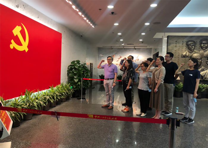 根据校党委和院党委关于“三会一课”,开展一次“做‘宣言精神’忠实传人”主题党日活动以及四史学习工作的安排,值中国共产党成立99周年之际,h漫 教工第七支部8名党员于2020年7月7日下午集体参观了中国共产党第一次全国代表大会会址纪念馆。