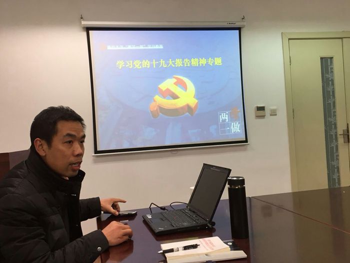 12月19日中午1:00~1:50,教工第一支部在化学楼南楼229会议室集体学习十九大报告。这次会议由支部书记杨国勋同志为大家上党课。党课的内容为“学习十九大报告,切实履行高校教师思想意识形态教育职能”。