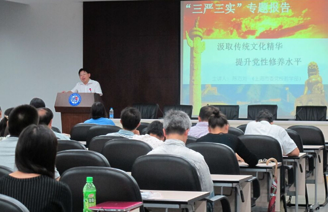 为深入学习贯彻落实“三严三实”,加强党员干部自身修养,2015年9月16日下午,h漫 党委邀请中共上海市委讲师团首批成员、上海市委党校陈方刘副教授在张江校区行政楼106报告厅作了一场名为《汲取传统文化精华,提升党性修养水平》的专题报告。报告由h漫 党委宣传委员张雪梅教授主持,h漫 全体教职工党员、教研室主任和学生支部委员以及张江管委会的老师参加了报告会。