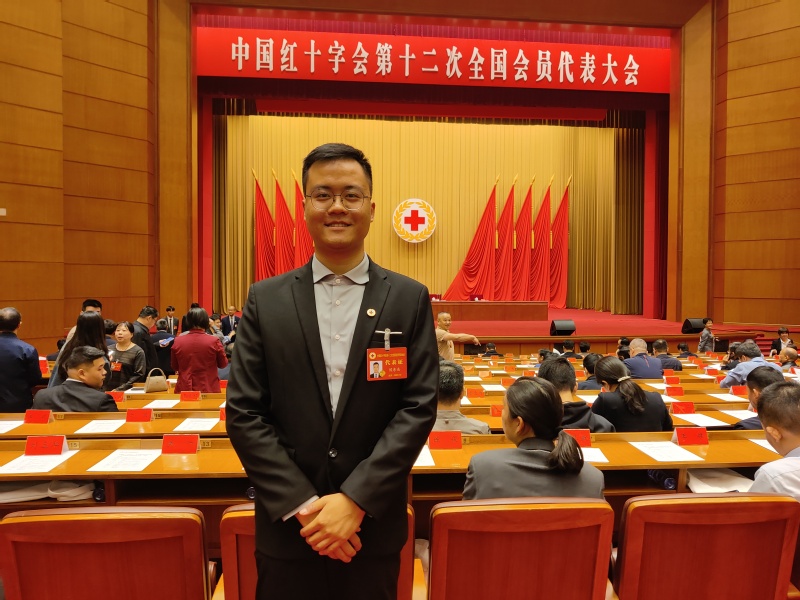 中国红十字会第十二次全国会员代表大会于2024年10月9日至10日在北京召开,中共中央总书记、国家主席、中央军委主席习近平致信大会,向全国广大红十字工作者、会员、志愿者致以诚挚问候,并对做好红十字工作提出希望。h漫 2022级生物药物学系卓博学员侯东岳作为青年会员代表随上海代表团参加大会,并当选为中国红十字会第十二届理事会成员(青少年与志愿者理事类别)。