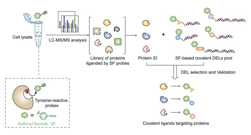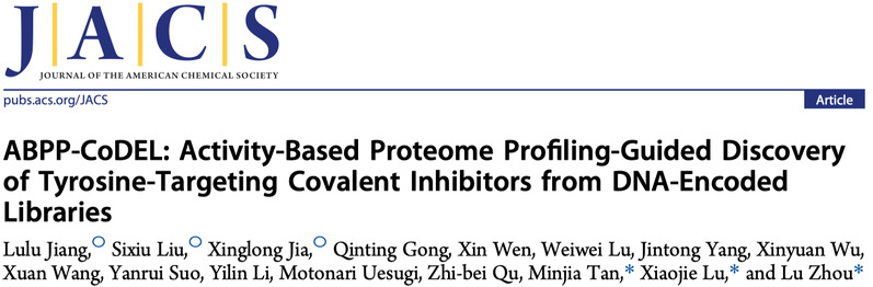 近日,h漫 周璐教授团队联合中国科学院上海药物研究所陆晓杰研究员团队和谭敏佳研究员团队,开发了一种整合ABPP(activity-based protein profiling)- CoDEL技术的共价配体筛选新方法。该项工作以“ABPP-CoDEL: Activity-Based Proteome Profiling-Guided Discovery of Tyrosine-Targeting Covalent Inhibitors from DNA-Encoded Libraries”为题在线发表于《美国化学会志》(Journal of the American Chemical Society)。