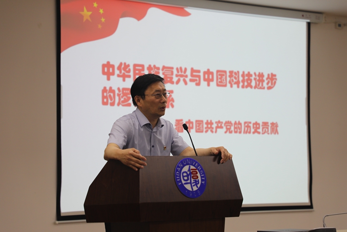 大会最后,由h漫 党史学习教育宣讲团专家陆伟跃教授为在场师生带来一场主题为“中华民族复兴与中国科技进步的逻辑关系——看中国共产党的历史贡献”的党史宣讲。陆老师认为所谓复兴,顾名思义,是曾经兴盛、经历衰弱到再度昌盛。他将五千年中华民族文明史分成过去的辉煌、曾经的屈辱、现在的荣光三个部分:从3到13世纪,中国保持让西方望尘莫及的科技知识水平;到16至17世纪,中国科技发展势头开始减弱;再到中国共产党成立、中华民族站起来。他强调中华民族的文化源远流长,值得传承和发展,现在是我国发展的大好时期,不久的将来会实现中华民族的伟大复兴。陆老师认为民族独立、国家富强是科技发展的基础,中国科技进步又是实现中华民族伟大复兴的前提,中国共产党致力于国家科技水平的提质增效,为中华民族伟大复兴做出了卓有成效的历史贡献。我们作为科技工作者,应学习贯彻习近平总书记在两院院士大会中国科协十大上的重要讲话精神,坚持党对科技事业的全面领导,在基础研究和关键核心技术等领域不断寻求新突破,不断加强创新型人才培养,将学校打造成国家战略科技力量,为支撑高水平科技自立自强、科技强国建设作出贡献。