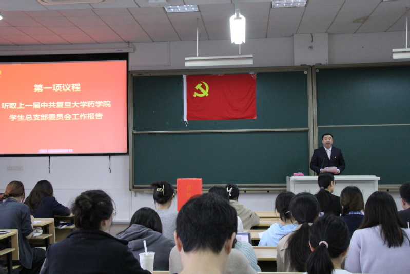 下午3时整,大会在庄严的国歌声中开始。第六届学生党总支书记王盛同志首先代表上届学生党总支委员会向大会作了题为《立足新时代,勇担新使命——为培养新时代药学拔尖创新人才而接续奋斗》的工作报告,从四个方面对上一届学生党总支工作进行了回顾总结:强根固魂,加强思想政治建设;夯基筑台,完善组织制度建设;奋楫笃行,拓展志愿实践服务;凝心聚力,坚守意识形态阵地。报告强调,高校基层党组织是党在高校全部工作和战斗力的基础,而学生党总支是学生思想政治工作贯彻落实的“基层枢纽”,并提出了“继续强化政治引领,提升政治能力;强化理论武装,筑牢思想根基;夯实基层党组织建设,提高组织战斗力;融入国家发展需求,发挥专业特色”的奋斗目标和工作重点。全体与会人员以热烈的掌声通过了大会报告。