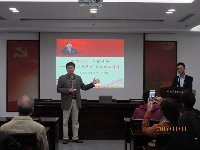 次日我们参观了南湖革命纪念馆。馆内一张张珍贵的史料照片铺就了一幅幅动人的画卷,讲述了建党96年来,共产党人为争取民族解放、国家独立的革命史,也展示了共产党人为争取中华民族伟大复兴、国家走向富强民主的不懈奋斗史。在纪念馆北广场,学院党委书记陆伟跃同志带领全体党员面向党旗庄严而郑重地宣誓,再次重温入党誓词。随后全体党员聆听了中共嘉兴市委党校基础理论教研室李益模老师上的“不忘初心 牢记使命——回顾建党历史 弘扬红船精神”的专题党课。李老师全面又生动地讲述了中国共产党人的奋斗历程,并对“红船精神”,即“开天辟地、敢为人先的首创精神,坚定理想、百折不挠的奋斗精神,立党为公、忠诚为民的奉献精神”的丰富内涵进行了阐释。