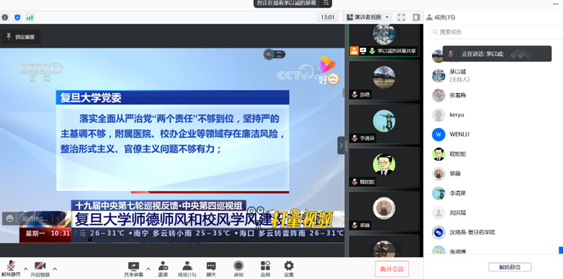 11月30日下午,药理学系通过腾讯会议开展线上政治理论学习,学习由沈晓燕老师主持。本次学习围绕师德师风建设开展。首先,老师们集中学习了教育部关于师德专题教育总结暨师德师风建设重点工作落实推进会的会议精神。会议强调,各高校要落实师德第一标准,将师德第一标准体现落实到教师管理各环节,贯穿教育教学管理各方面。老师们表示会按照上级精神对标对表,总结经验、查找不足、补齐短板,预防各类师德违规问题发生。随后,大家共同观看了有关中央巡视组对h漫 党委的巡视反馈情况相关报道。最后,大家以h漫 上海医学院党委教师工作部编写的师德师风学习材料作为主要内容开展学习,并纷纷结合日常工作与师德师风建设的要求,展开了深入的讨论。
