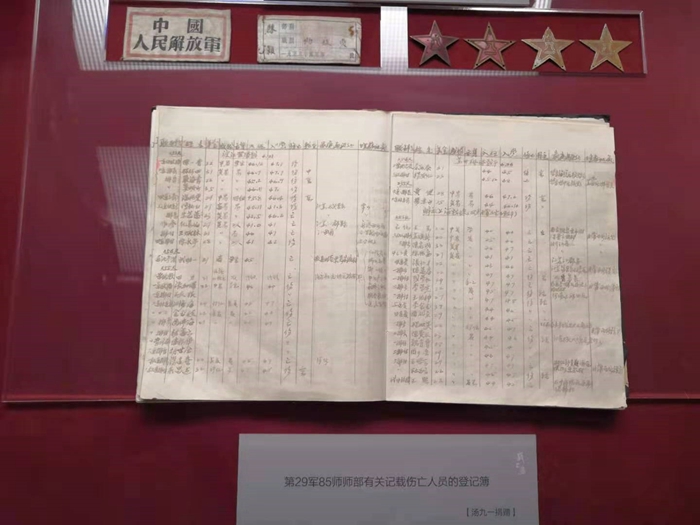 在一本陈列的“第29军85师师部有关记载伤亡人员的登记簿”上,详细记录着伤亡人员情况,年龄最大的战士年仅35岁,大部分战士都是在二十多岁的青春年华。其中,中共党员占了很大比例。他们将年青而宝贵的生命奉献给了伟大的上海解放战役,为人民解放和新中国的建立立下不朽的勋章。