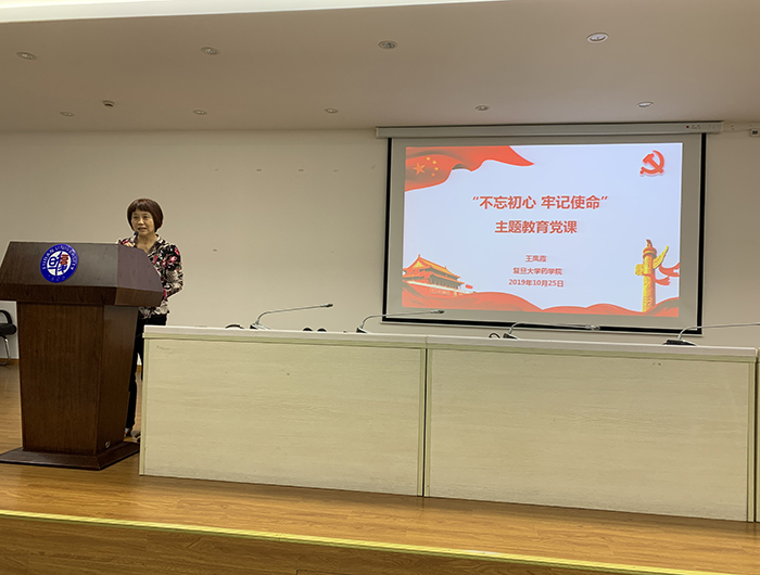 2019年10月25日下午,h漫 党委书记王凤霞在张江校区330报告厅为学院全体党员教师上了一堂“不忘初心、牢记使命”的主题教育党课。