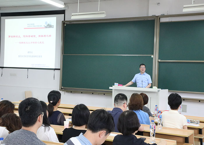 中国特色社会主义建设进入新时代,高校教师如何将自己的日常工作与“三全育人”综合改革、立德树人根本任务紧密结合起来,是教师们经常思索的问题。作为“不忘初心、牢记使命”主题教育,h漫 聚焦于人才培养,于2019年9月17日下午特别邀请了中国科学院院士、h漫 党委常委、h漫 统战部部长赵东元教授,为全院教师作主题为“育创新沃土, 笃科学诚信,探真理之妙——创新拔尖人才培养之我见”的思政教育专题讲座。报告在张江校区2306教室举行,h漫 党委副书记史雪茹主持会议。