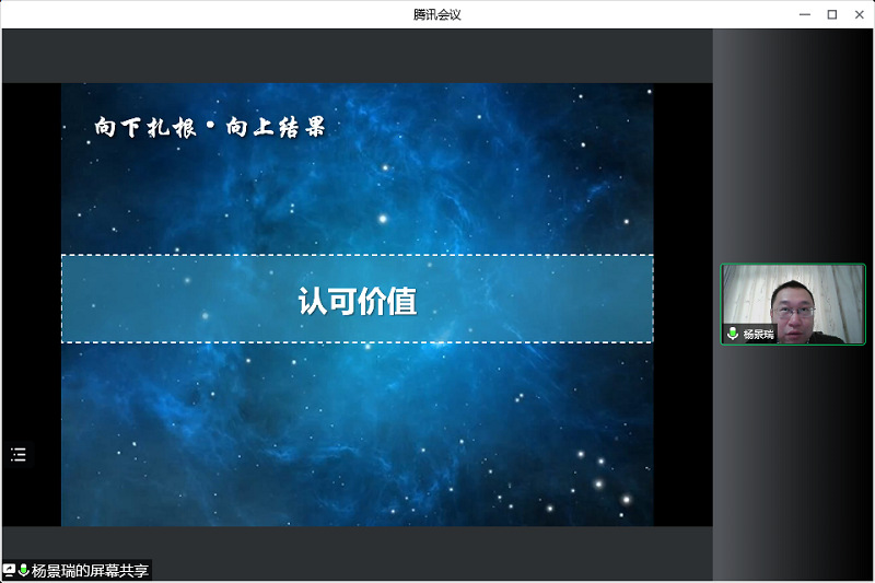 在嘉宾分享环节中,杨景瑞校友认为,大家的根基从h漫 的学习开始,在疫情特殊时期更要珍惜学习的机会,在大学期间打好的基础会对未来起到重要作用。在分享过程中,杨景瑞校友结合自身经历,鼓励同学们要认识自己、认可自己的价值,提高综合能力、学会扬长避短,勇敢尝试、注重积累。他总结道:“我们要在学习生活中不断认识自己,大家刚进入大学,可以从现在开始尝试观察、尝试思考、与自己的内心多交流、尝试自己的发展方向。”