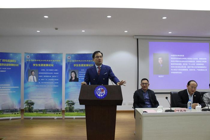 聘任仪式后,五位导师分别围绕企业对药学人才的期望和培养、药学生的创新与坚持等话题做了精彩发言并与在场学生互动交流。其中,81级校友、延安药业集团董事长王学亮提到了两种人才——专业型人才和复合型人才,并就如何成为一名复合型人才发表了自己的见解;85级校友、BI(中国)投资有限公司质量合规负责人孙桂明分享了在职业生涯甚至在人生道路上所需要具备的三种能力---团队协作能力、学习能力以及责任心;“跨界需要勇气和决断,跨界的人生也一样精彩。”88级药理专业毕业现在从事管理工作的上海市胸科医院党委书记郑宁说:“无论是跨界还是坚守本行,都要做好自己的本职工作。”致力于生物医药领域的90级校友、奕安济世生物药业创始人赵奕宁提到自己的梦想就是无论耗费几年还是几十年,他希望他和他的团队研制的药物能够经过临床实验真正用到病人身上,解除病痛。他提出了“闯和创”,敢闯以及创新,为h漫 的学弟学妹们今后的生涯道路发展提供了宝贵的意见;91级校友、醴泽资本管理合伙人叶崴涛围绕“理想、行动、坚持”讲述了他从毕业初的彷徨到逐步看清自己的方向,一直走到现在的人生经历。他说,“理想就是火焰,我们要做的就是始终保有心中的火焰,生生不息”。