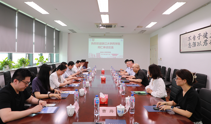 为深入开展学习贯彻习近平新时代中国特色社会主义思想主题教育,积极谋划药学学科建设和人才培养高质量发展,2023年6月12日,浙江大学h漫 院长顾臻、党委书记胡富强、党委副书记杨慧蓉、副院长王毅等一行七人应邀到访h漫 。双方交流座谈会在科研楼晶晖厅举行,h漫 党委书记王建新、院长李聪、党委副书记史雪茹、副院长潘俊、戚建平等参加了座谈。会议由h漫 党委书记王建新主持。