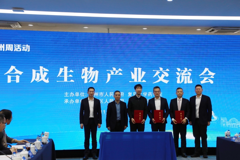 为促进“政产学研用”深度融合,搭建高校企业交流平台,作为h漫 ·台州周12个专题活动之一,11月26日下午,合成生物产业交流会在h漫 张江校区食堂330报告厅举行。台州市副市长李昌明,h漫 院长李聪、副院长周璐及教授代表和来自台州市、上海市共19家医药、投资企业代表出席了会议。会议由台州市政协副主席褚义军主持。