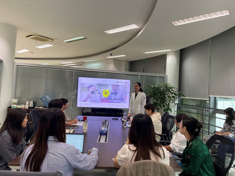签约仪式结束后,杨院长为与会教师做了口腔健康科普知识讲座,她从成人常见牙科疾病、儿童口腔保健等方面对生活中常见的口腔问题进行了深入浅出的讲解,并耐心解答了老师们的提问,使大家受益匪浅。