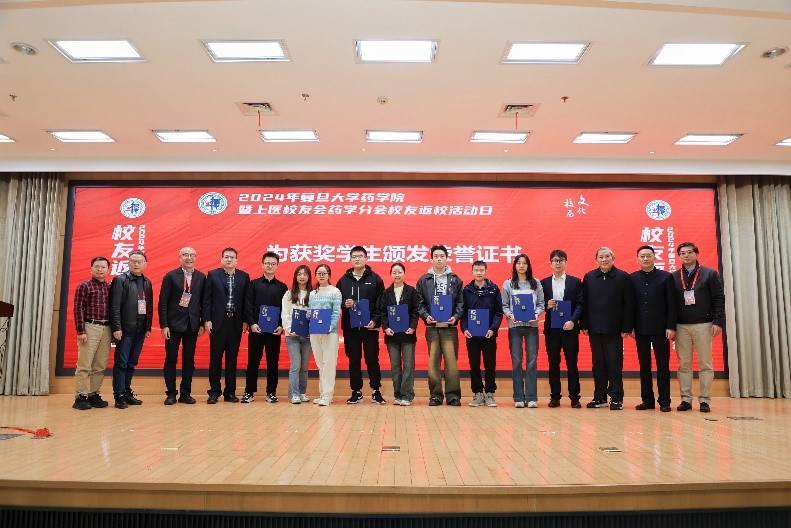 上医校友会药学分会副会长、松德基金发起人之一、85级药化专业校友峰山宣读了本年度松德奖学金获奖学生名单,并与基金发起人代表一起向获奖同学颁发了荣誉证书。
