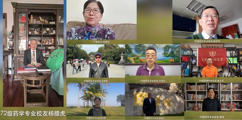 会场播放了各地校友发来的视频集锦,句句祝福和愿望百川朝海,透过大屏,温暖、激励着在场的每一位药学人。