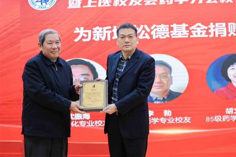 今年松德基金发起人队伍又新增5位校友,他们分别是83级药化专业沈振海,85级药学专业胡文波、李勃,86级药化专业黄掌欣和87级药学专业黄言军。上医校友会药学分会会长熊仿杰为出席活动的李勃校友颁发捐赠证书。李勃在发言中感谢熊老师和各位发起人创立松德基金,为校友们提供了回馈母校的平台,能为学弟、学妹们的学习和生活提供一点帮助,他感觉很有意义。