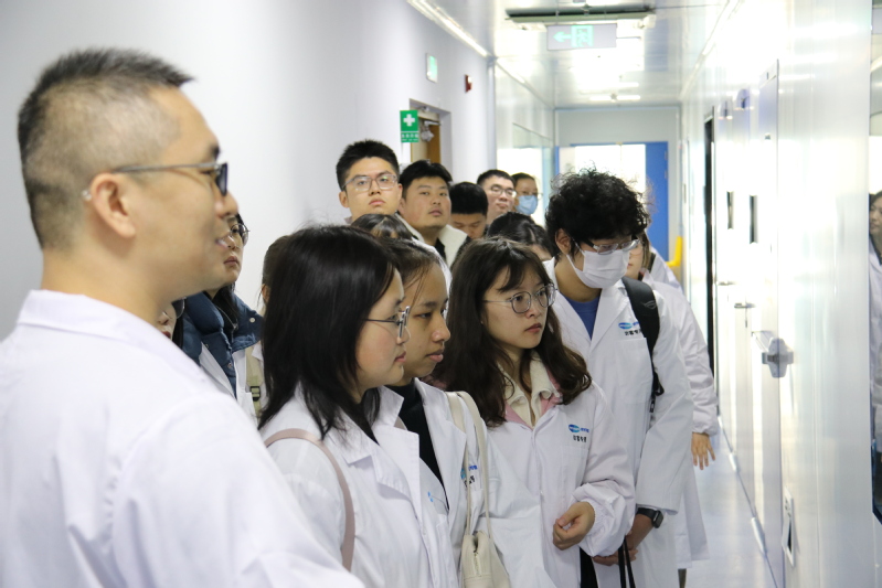 参观完展厅后,同学们换上白大褂来到大分子研发中心,参观了济民可信的实验室和办公区,干净、整洁的环境和现代化的仪器设备给同学们留下了深刻印象。