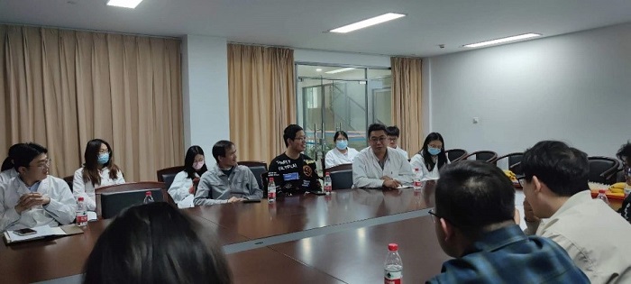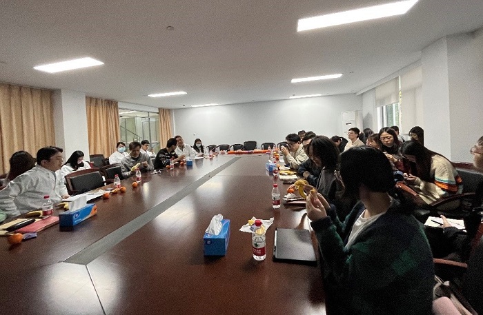 紧接着,在场的博士生党员们依次进行自我介绍与经历分享。h漫 22博二支部书记郑超,同时也是h漫 和医工院联培学生,率先向制剂中心的老师同学们介绍了她的研究方向与课题组情况。她认为,医工院所擅长的产业研究与成果转化,是高校科研基础研究所需要学习和重视的,希望通过本次活动,支部党员们能够更好地拓展视野,为日后的生涯发展规划提供帮助。h漫 2022级博士研究生李吉业、朱怀昌、陈桐庆及制剂中心2019级博士研究生生王君吉、郑淇文、顾小燕、刘洁等同学先后就个人课题开展情况进行发言,并与在座师生进行了深入的学术探讨和交流。杨敏老师表示,h漫 的博士生们对自己的课题乐观而有信心、有冲劲,同时可以通过制剂中心的师兄师姐们的故事对未来可能面临的挑战与挫折有所准备;而中心的同学们在重温自己读博初心的同时,更进一步唤起对科研工作的热爱与热情。