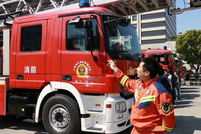 最后,学生党员们在张江消防救援站队员的带领下分批进行了参观,消防指战员们向同学们详细介绍了各类消防车的功能及用途,讲解其配备的各种消防器材,并进行操作示范。同学们在参观中切实感受“火焰蓝”坚守使命、勇于担当的优秀品质,深刻理解“全心全意为人民服务”的内涵。本次活动在消防指战员与同学们的亲切交流中圆满结束。