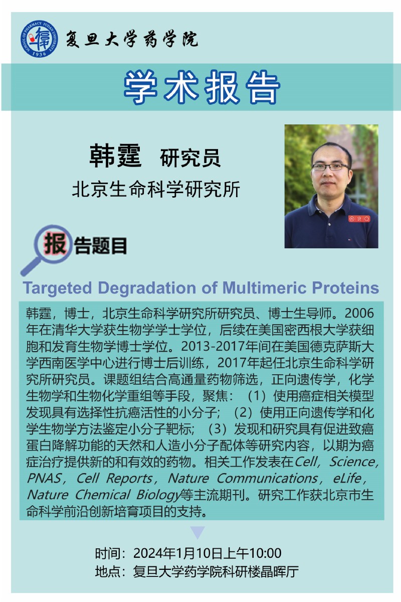 1月10日学术报告 - Targeted Degradation of Multimeric Proteins