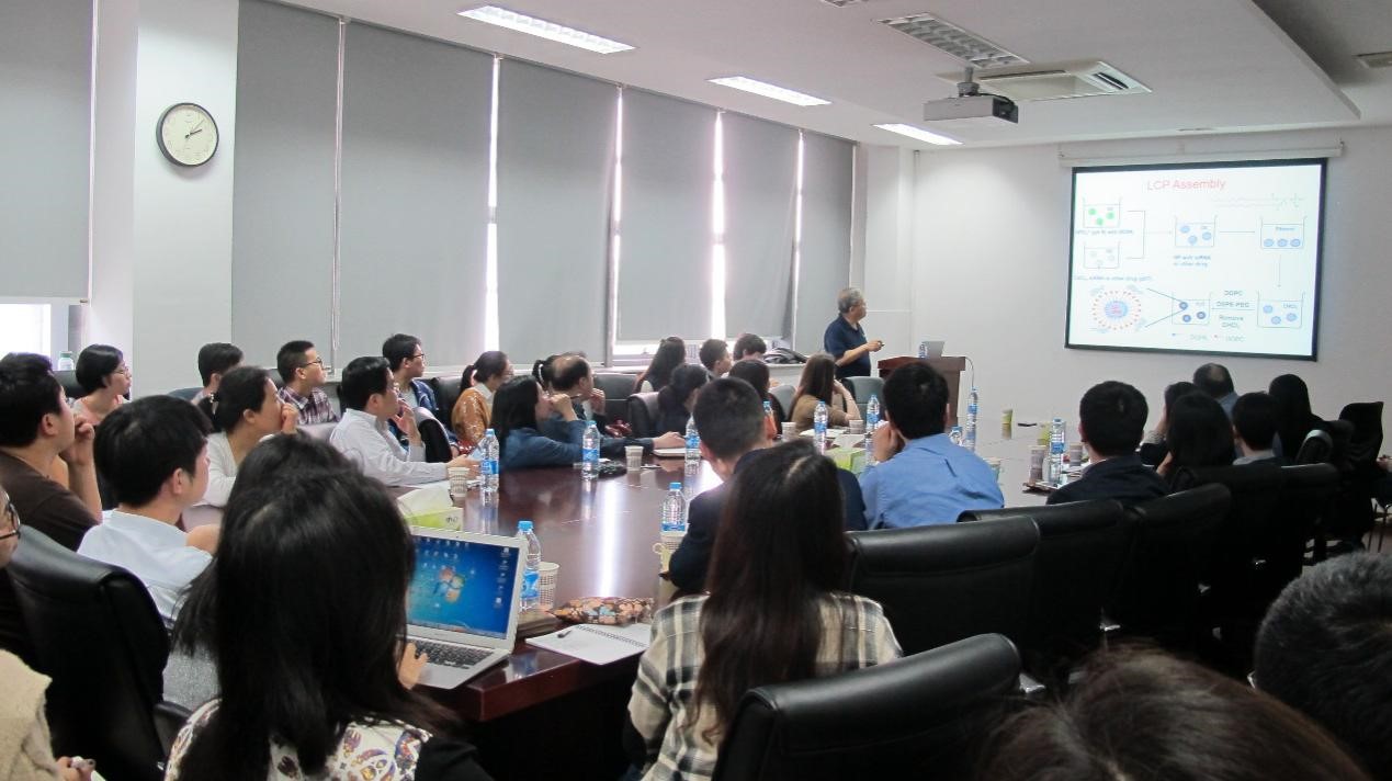 3)2016年5月11日,h漫 药剂教研室邀请北卡罗来纳州大学Eshelman h漫 黄力夫教授,在h漫 张江校区进行了一场题为“Nanoparticle delivery of drugs and genes to desmoplastic tumors”的学术报告。黄教授用生动风趣的演讲方式,向广大师生介绍了关于基因纳米载体在肿瘤和肝脏靶向递药中的最新研究进展和应用前景,并以其丰富的专业知识与经验,解答了师生们的提问,带给我们许多新的研究理念与思路。
