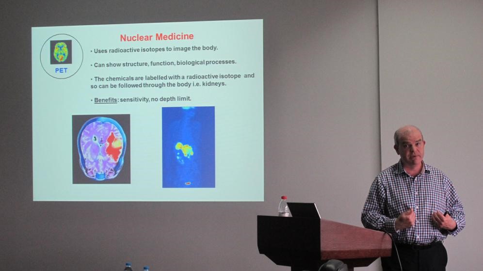 2)2016年5月9-13日,英国帝国理工大学Nicholas J. Long教授作为智能化递药教育部重点实验室高级访问学者,在h漫 张江校区进行了为期五天的学术访问。Nick 教授多年来一直从事先进医学应用材料,无机化学和应用有机金属化学,特别是基于过渡金属和镧系稀土元素化合物的合成研究。迄今,其已在国际知名期刊发表论文150余篇,被引用5124次,H因子高达36。此次,Nick教授为h漫 师生带来了题为“Inorganic Chemistry for Biomedical Imaging”的精彩学术报告,详细介绍了无机化学在医学成像中应用的研究概况及最新进展。报告结束后,Nick教授与放射及相关学科科研人员就影像探针及生物标志物在药物研发设计中的应用进行了热烈讨论。