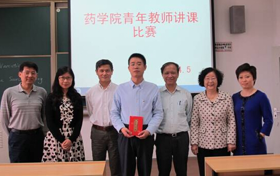 决赛于2014年5月13日举行,比赛前,参加决赛的选手们都积极准备着,努力以最好状态来迎接这次挑战,希望在本次比赛中获得好的成绩,比赛在下午1:00正式开始,主持人韩丽妹老师隆重地介绍了7位评委老师,他们都是在教学一线上辛苦耕耘多年,并积累丰富教学经验的资深老师,分别是h漫 教学副院长侯爱君教授、药物化学教研室叶德泳教授、放射药学教研室朱建华教授、药理教研室程能能教授、临床药学与药事管理教研室蔡卫民教授、药剂教研室方晓玲教授、实验教学中心王洋教授,大家以热烈的掌声欢迎各位评委老师的出席,同时我们也邀请各教研室45岁以下的青年教师来观摩,能容纳50个位子的教室座无虚席,现场气氛空气高涨。6位参赛选手基本上围绕教学态度、教学内容、教学方法、教学能力与艺术、英文讲授的几方面进行讲授,看出个个参赛老师都精心准备,讲课风格各异,有的从容不迫或沉着稳健,娓娓道来,有种清风拂面的感觉,有的风趣幽默,诙谐的语言带来阵阵的笑声,大家尽情施展个人才华,充分展示了其个人魅力及专业知识的积累。评委老师们对各参赛选手做了点评,从创造性、讲课技巧、授课方式、互动、讲课内容、仪态等方面进行了深刻的分析,同时提出了很多宝贵的意见和建议。经过3个半小时精彩的激烈角逐后,来自药物化学教研室的张伟老师拔得头筹,获得了本次比赛的一等奖。临床药学教研室的相小强老师和郑媛婷老师分别获得二等奖和三等奖。比赛结束后6位参赛选手与评委老师们一起合影留念,为本次活动划上了一个圆满的句号。