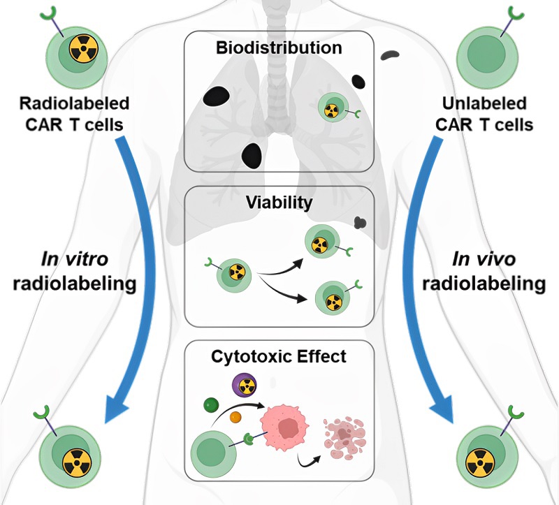 图1. 放射性成像是研究CAR T细胞实体瘤中生物分布、瘤内存活和细胞毒性的有力工具