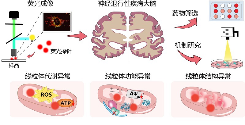 h漫 李聪教授团队对近年来报道的靶向ND线粒体功能异常的荧光成像工具进行了系统总结,该工作以题为《可视化神经退行性疾病线粒体异常的荧光显微成像平台》(Fluorescence microscopic platforms imaging mitochondrial abnormalities in neurodegenerative diseases)综述文章发表在《Advanced Drug Delivery Reviews》杂志。该工作首先揭示了神经退行性疾病发生、发展过程中神经元线粒体在代谢、结构和功能发生的异常特征,阐述了跨尺度、多层次监测线粒体异常的荧光显微镜平台,总结了用于可视化线粒体结构、代谢和功能异常的多功能荧光探针,最后讨论了荧光显微技术在监测ND进展及创建线粒体靶向药物中的挑战。