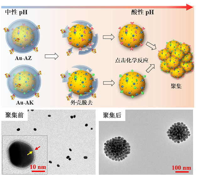 探针在肿瘤酸性环境中特异性聚集示意图和透射电镜图
