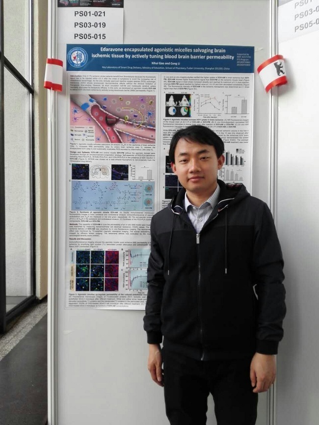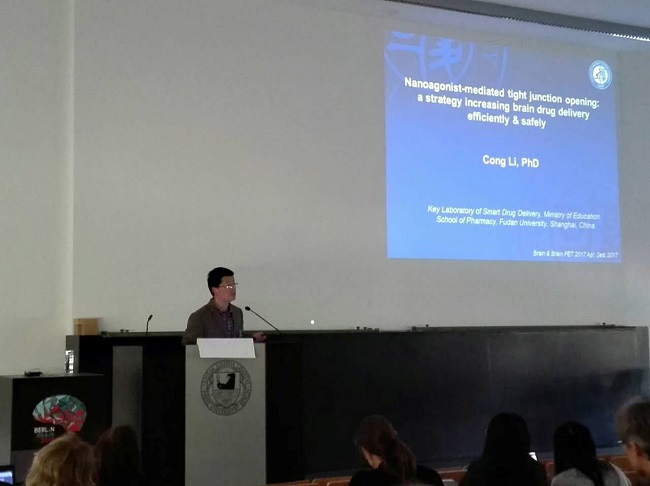 2017年3月31号到4月5号,李聪教授和博士研究生高西辉赴德国柏林参加第28届国际脑血流、脑代谢与脑功能会议。李聪教授做15分钟题为 “Nanoagonist-mediated endothelial tight junction opening: a strategy increasing brain drug delivery efficiently and safely”口头报告,向与会专家介绍纳米激动剂提高药物脑部递送相关工作。博士生高西辉经大会评选获得“Early Career Investigator Travel Bursary”奖项,并就题为“Edaravone encapsulated agonistic micelles salvaging brain ischemic tissue by actively tuning blood brain barrier permeability”工作进行壁报展示。