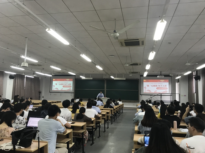 为扎实推进党史学习教育,引导全体师生党员从党的光辉历史中汲取砥砺奋进的精神力量,2021年6月3日下午,h漫 在张江校区第二教学楼Z2306教室举办党史学习教育宣讲会,邀请到h漫 党史学习教育宣讲团专家、h漫 附属华山医院副主任医师熊祖泉作题为《‘医’心向党 为了人民》的精彩报告。h漫 副院长张雪梅主持会议,全院近200名师生党员参加学习。