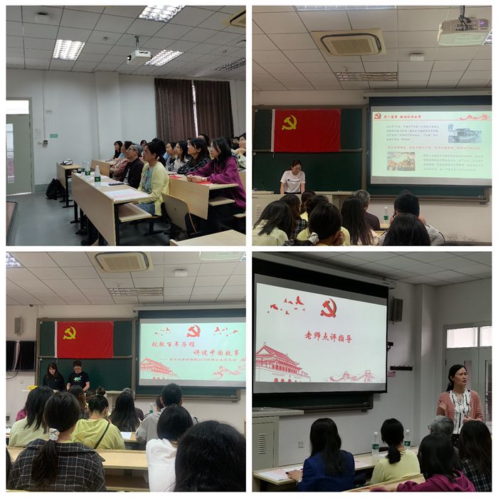 此次活动经过精心策划组织,内容丰富多彩。分为六个环节,包括问卷调研,选取主旋律歌曲;党史学习,分享各篇章创作;手语教学,表白心爱的祖国;改编合唱,结合新媒体创作;重温誓词,树牢新青年信仰;教师点评,完善溯百年产出。19硕的同学们前期对《我和我的祖国》歌曲进行了改编,重新填词并录制了精彩的MV。在支部组织活动的现场,同学们分组介绍了党史学习的经验和心得,并分享了结合学习内容填词改编的创作过程和感想。师生们共同演唱了改编的歌曲,并学习了“我爱我的祖国”的手语动作。然后师生党员同志一同面对党旗,重温了入党誓词。最后,党员教师代表还对此次活动进行了点评,发表了参会感想,并对研究生们提出了期望,希望能够通过师生支部共建,充分发挥各自的优势,丰富支部活动的形式,共同做好学生思想政治工作,服务学生成长成才。