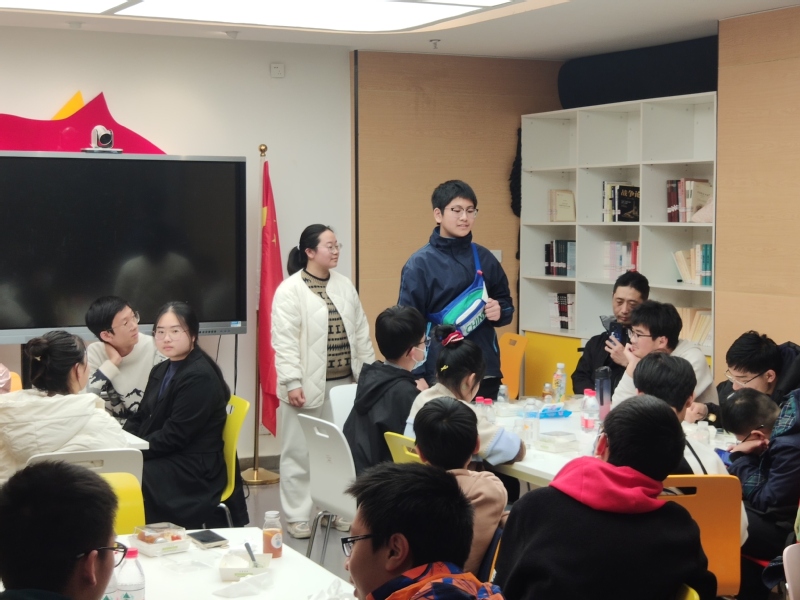 最后,志愿者与同学共同来到h漫 枫林校区学生活动中心进行座谈交流。志愿者同华泾镇小朋友以及家长就近期考试情况、课程内容设计、知识点掌握情况开展自主交流,在主持人的引导下,小朋友以及对接的h漫 志愿者各自分享了自己的感想感悟。
